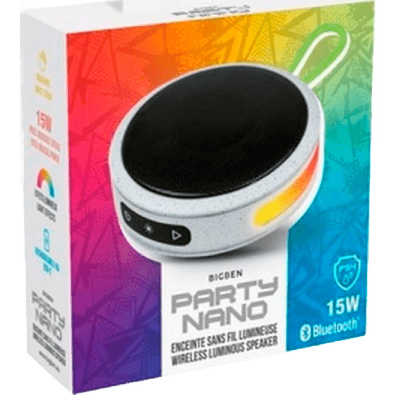 • Głośnik BT BB Party Nano ma wbudowane diody LED, dzięki którym jest oryginalnie podświetlony. Poza tym jest wyposażony w akumulator, co sprawia, że możesz go zabrać ze sobą wszędzie. Jest odporny na zachlapania i wilgoć oraz posiada obudowę wytrzymałą na wgniecenia, pęknięcia i zadrapania. Łatwy do przenoszenia dzięki poręcznej zawieszce, dzięki której możesz go przypiąć do plecaka lub zawiesić w samochodzie.